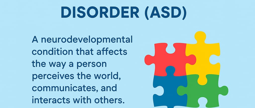Autism Spectrum Disorder (ASD) is a neurodevelopmental condition that affects how a person perceives the world, communicates, and interacts with others. It is characterized by difficulties in social interaction, communication, and the presence of repetitive behaviors or restricted interests.